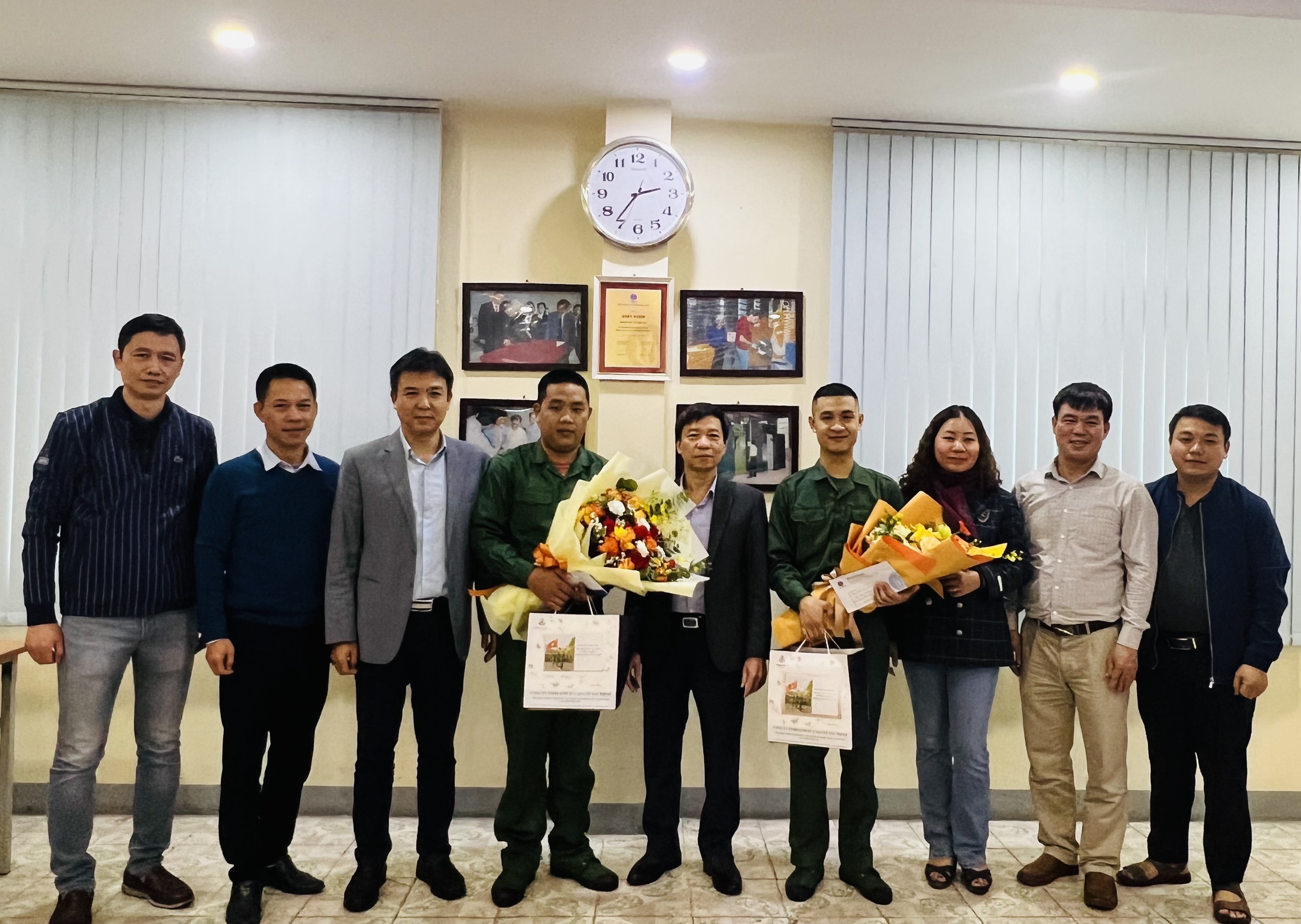 Tại buổi gặp mặt, các đồng chí Lãnh đạo Công ty đã phát biểu động viên và bày tỏ niềm tin tưởng, cảm ơn tới 2 đồng chí tân binh, chúc các đồng chí lên đường mạnh khỏe, ra sức rèn luyện, phấn đấu để hoàn thành tốt nhiệm vụ thiêng liêng mà Đảng, Nhà nước và Công ty đã trao gửi. Sau khi hoàn thành nghĩa vụ quân sự trở về, Công ty sẽ dành những điều kiện thuận lợi nhất để các cựu quân nhân tiếp tục công tác.