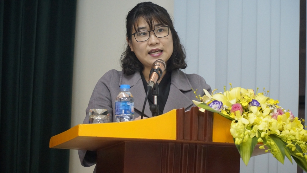 Bà Phạm Ngọc Bích - Trưởng ban kiểm soát Tổng công ty phát biểu tại Hội nghị