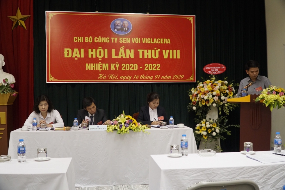 Đại hội đã nghe đồng chí Nguyễn Văn Tiến - Bí thư Chi bộ đọc dự thảo báo cáo chính trị của Chi bộ, báo cáo kiểm điểm của Ban chi ủy nhiệm kỳ 2017-2020 và nghe một số ý kiến phát biểu tham luận về hoạt động sản xuất kinh doanh của Công ty. Báo cáo chính trị và ý kiến tham luận tại Đại hội đã khẳng định: Trong nhiệm kỳ qua, dưới sự lãnh đạo của Đảng ủy Tổng công ty Viglacera, Chi bộ Công ty đã có nhiều chuyển biển tích cực trong tất cả các lĩnh vực. Công tác xây dựng Đảng đã được chú trọng, phát huy được vai trò lãnh đạo, chỉ đạo, góp phần vào việc thực hiện tốt các nhiệm vụ chính trị của đơn vị. Những kết quả này đã khẳng định vai trò quan trọng của Chi bộ, Ban Giám đốc và toàn thể cán bộ đảng viên.