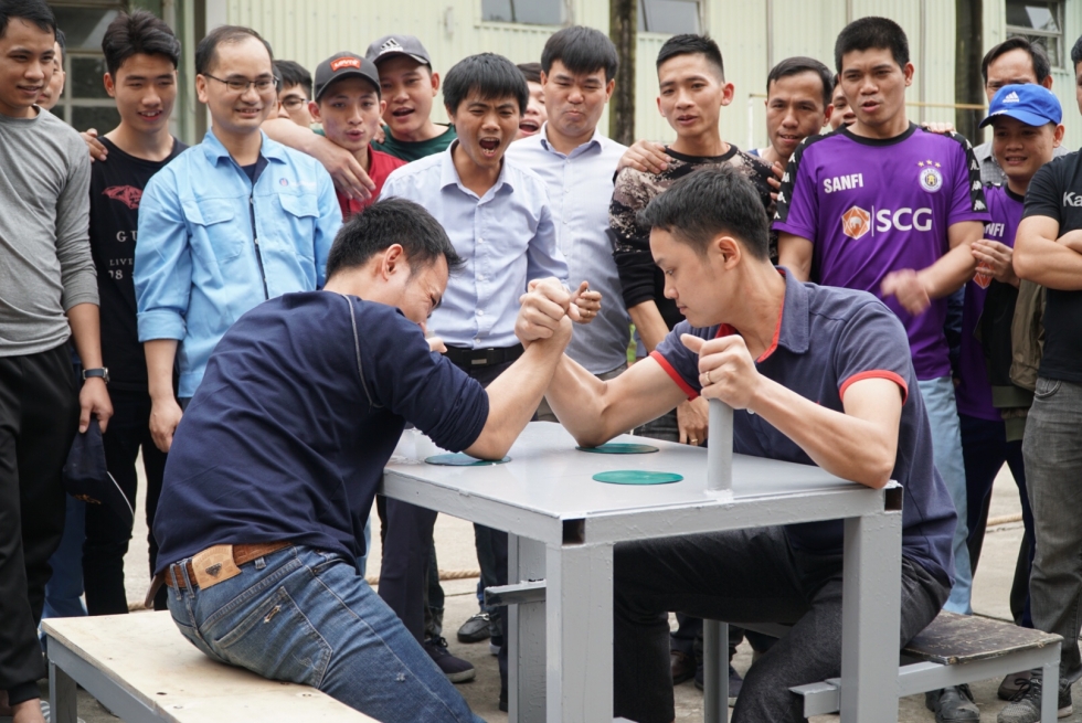 Hội thao Vật tay – Đập niêu – Kéo co đã thu hút gần 60 vận động viên tham gia thuộc 4 tổ công đoàn với 24 trận cho 8 nội dung 3 môn thi đấu.